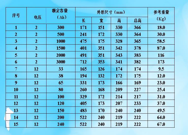 納米矽膠體(tǐ)鉛碳電(diàn)池額定電(diàn)壓:2V/12V容量: 33Ah ~3000Ah