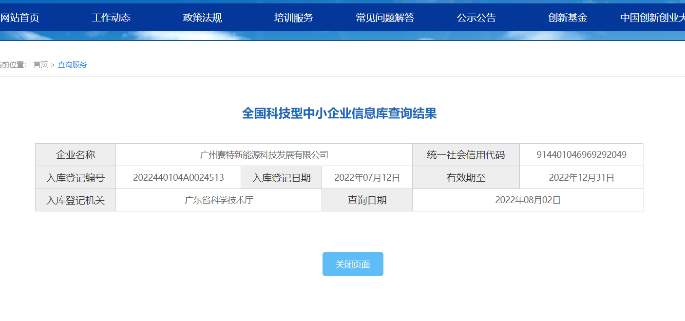 2022年(nián)6月(yuè)29日(rì),廣東艾利吉新能源≤科技發展有限公司獲得(de)科(kē)技←¥♦ (jì)型中小(xiǎo)企業(yè)稱号,于2022年(ni≈ ≥Ωán)7月(yuè)13日(rì)正式入庫登記。
