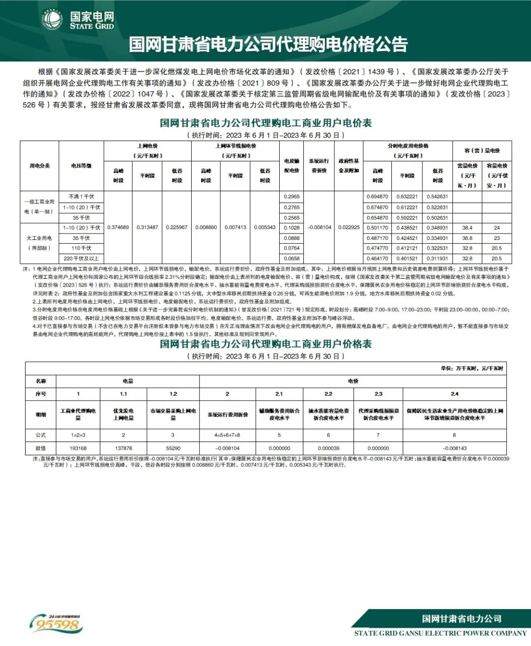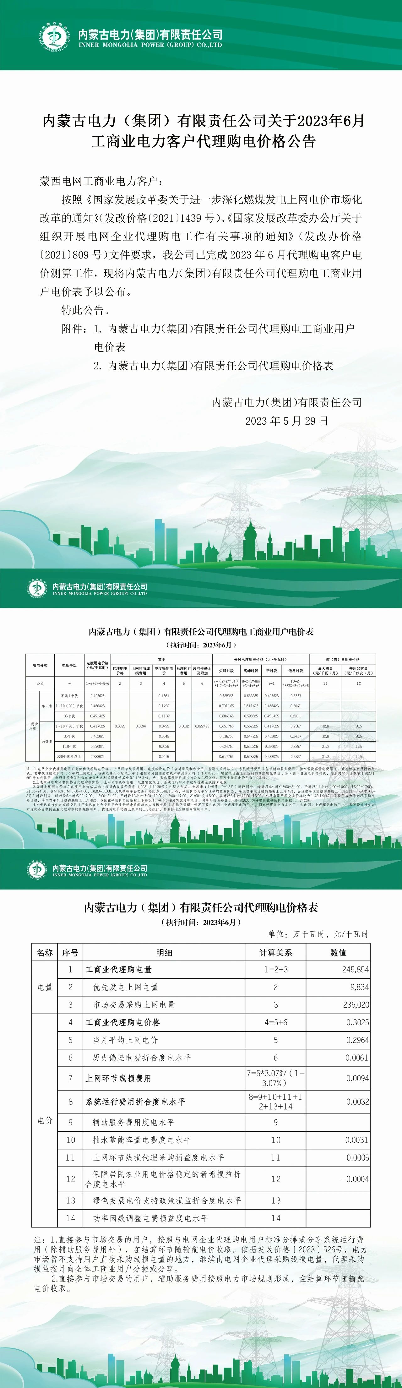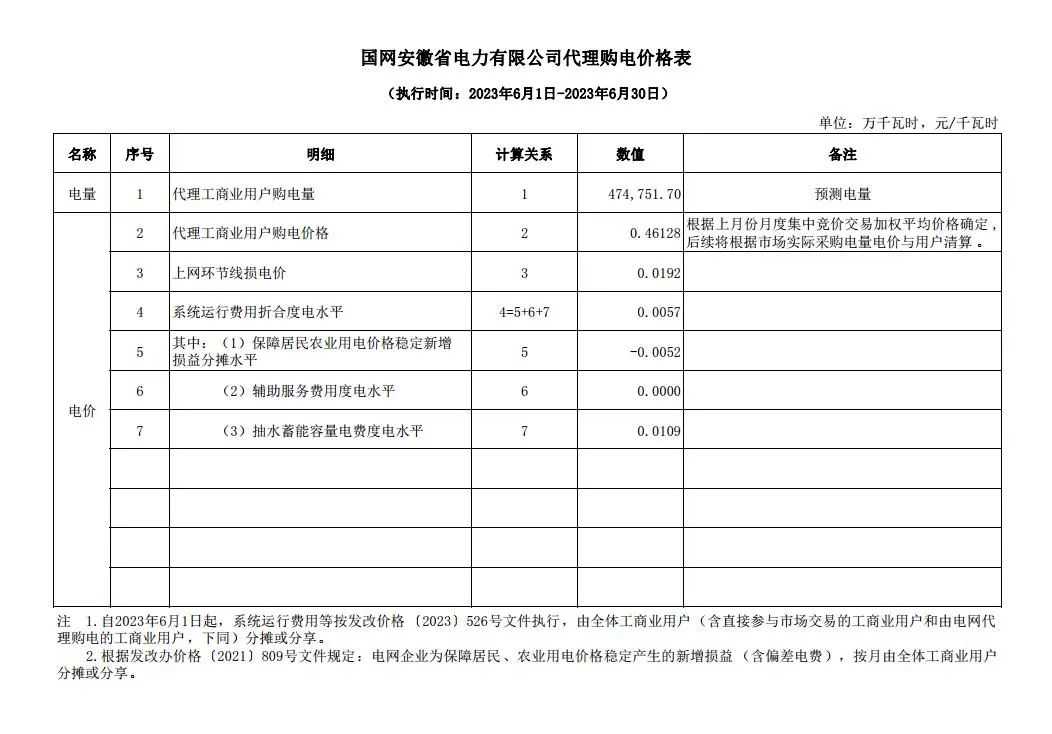 2023年(nián)6月(yuè)全國(guó)各地(dì)已發布電(d≠$♣←iàn)網企業(yè)代理(lǐ)購(gòu)電(diàn)價格。