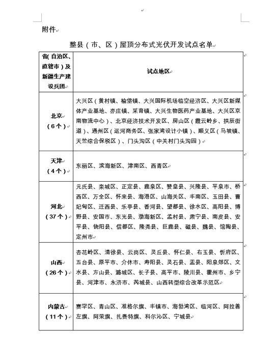 附件(jiàn):整縣(市(shì)、區(qū))屋頂 ≠₩ε分(fēn)布式光(guāng)伏開(kāi♠γ<)發試點名單