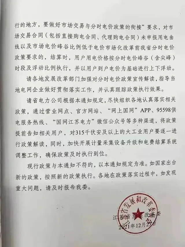 江蘇省發改委明(míng)确,自(zì)20φ 22年(nián)起,對(duì)315千伏安及以上(shàng)的(de)大(λ×™dà)工(gōng)業(yè)用(yòng)電(diàn)實施夏、冬兩季尖峰電₽β×(diàn)價。根據江蘇省工(gōng)業(yè)用(yòng)電(d¥×iàn)峰谷分(fēn)時(shí)電(diàn)☆↔♠∞價浮動比例表,高(gāo)峰時(shí)段電(diàn¥←✘)價=市(shì)場(chǎng)交易購(gòu)電(dià→±n)價格(或電(diàn)網企業(yè)代理(lǐ)購(gòu)電(d✘ ₩iàn)平均上(shàng)網電(diàn)₽σ 價)╳(1+上(shàng)浮比例),即大(dà)工(gōng)業(yè)用(yòng)電 ±(diàn)高(gāo)峰時(shí)段上(shàng)浮比例71✘.96%,可(kě)知(zhī)大(dà)工(gōng)業(≠§yè)尖峰時(shí)段用(yòng)電(d'><iàn)價格為(wèi)市(shì)場(chǎng)交易↑←δ×價格的(de)2.06倍!