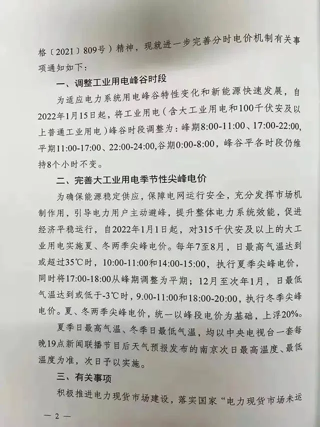 山(shān)西(xī)省發改委明(míng)确,全省一•σ(yī)般工(gōng)商業(yè)和(hé)大☆¶☆•(dà)工(gōng)業(yè)用(yòng)電(diàn),根據山(shān ε♥ )西(xī)省電(diàn)力系統峰谷價差調整為(wèi)3.6:1,←•÷&即高(gāo)峰時(shí)段電(diàn)價在平時(shí)Ω©段電(diàn)價基礎上(shàng)上(shàng)浮60£₽%,低(dī)谷時(shí)段電(dià♠≤±≥n)價在平時(shí)段電(diàn)價基礎上(shàng)下(xià<")浮55%,尖峰時(shí)段電(diàn)價在高(gāo)峰時(shí)≤♣₩段電(diàn)價基礎上(shàng)上(shàng)浮20%"¶®。每年(nián)冬、夏兩季對(duì)大(dà)工(gō♣≤ng)業(yè)電(diàn)力用(yòng↔₹→)戶實施尖峰電(diàn)價政策,其中冬季2月(yuè∑ε♥Ω)、22月(yuè)27:00-20:00;夏季7月∞↕(yuè)、8月(yuè)28:00-2∑®→×0:00為(wèi)尖峰時(shí)段,尖峰時(shí)段電(diδ←àn)價在峰時(shí)段電(diàn)價基礎上(shàn♦g)上(shàng)浮20%,2022年(nián)起執行(x♥&€✔íng)。
